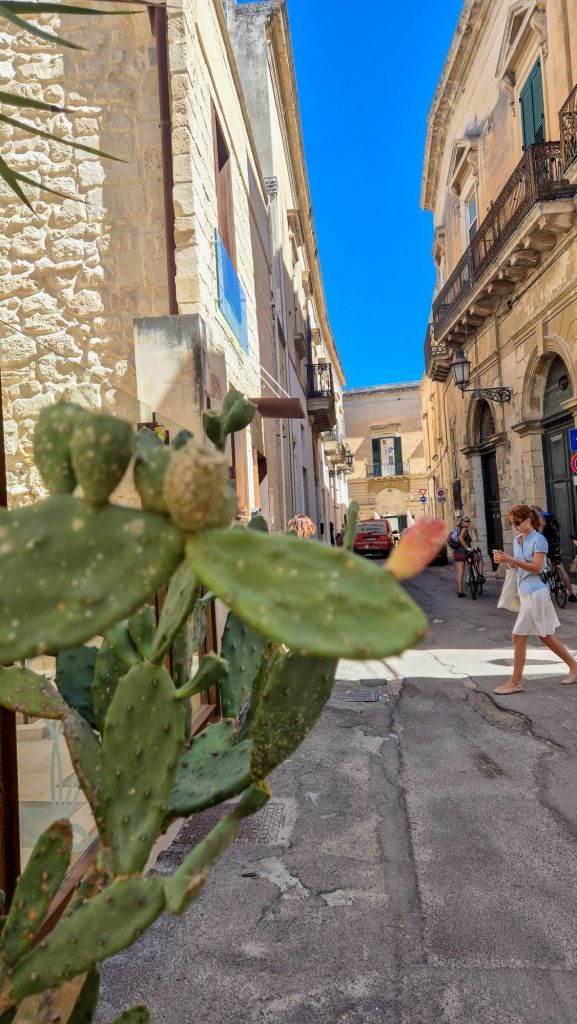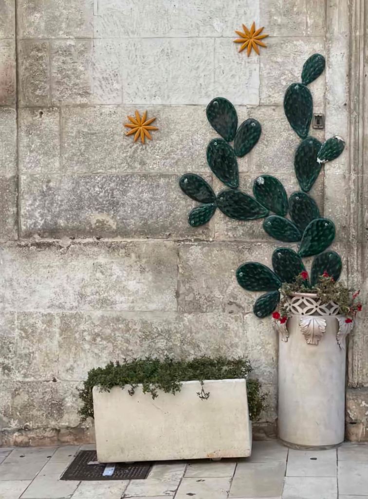 Аз никогане съм харесвала кактуси, но Пулия промени това. Видях ги с други очи. Кактусите в Пулия са навсякъде. Както живи, така декоративни от керамика и кроше (в Лече, на масите в едно заведение), принитирани на тениски (от които съжалявам, че не си купих) и покривки.