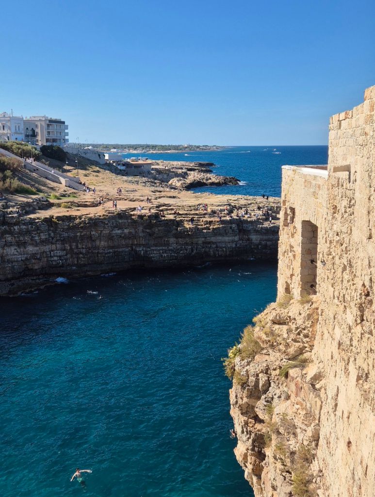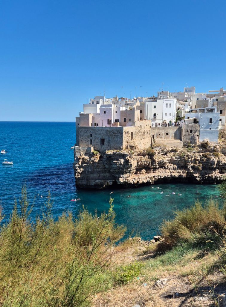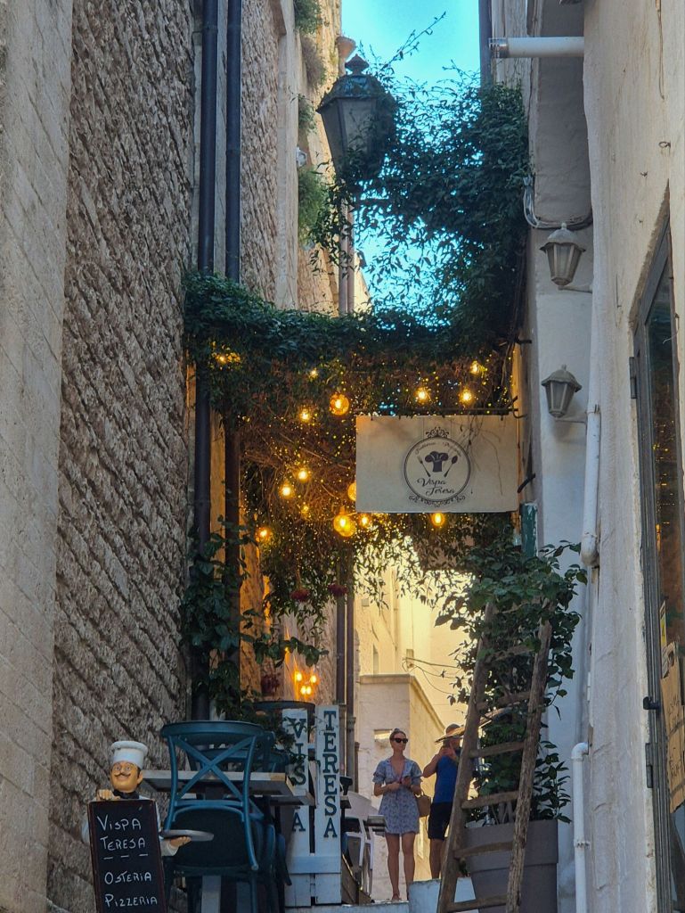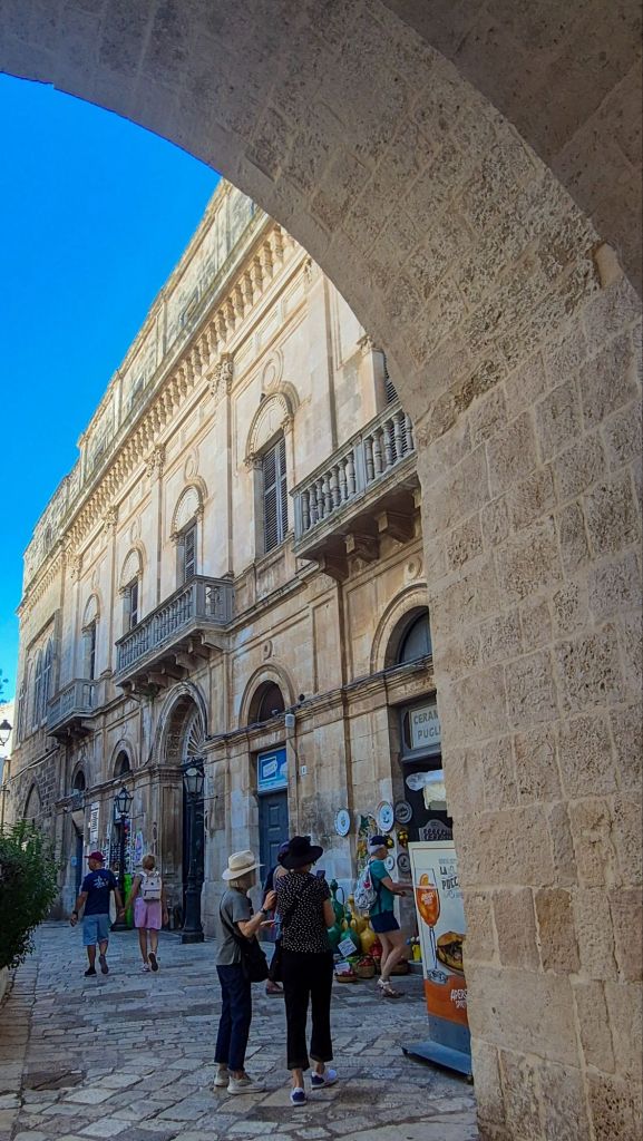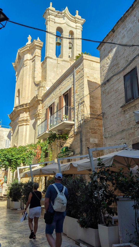 Една от забележителностите е т.нар. синя врата, от която има прекрасна гледка. Има изобилие от магазинчета за сувенири, кафенета и ресторанти. Тук за пръв път опитахме panzerotti – тестени изделия с пълнеж, обикновено от рикота и домати. Когато приключихме с обиколката, си хванахме автобус до гарата.