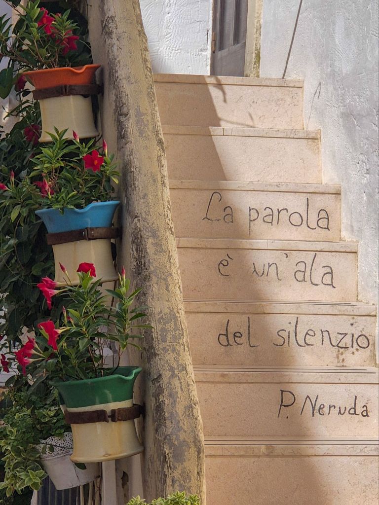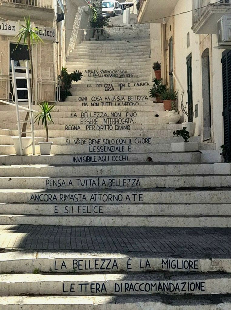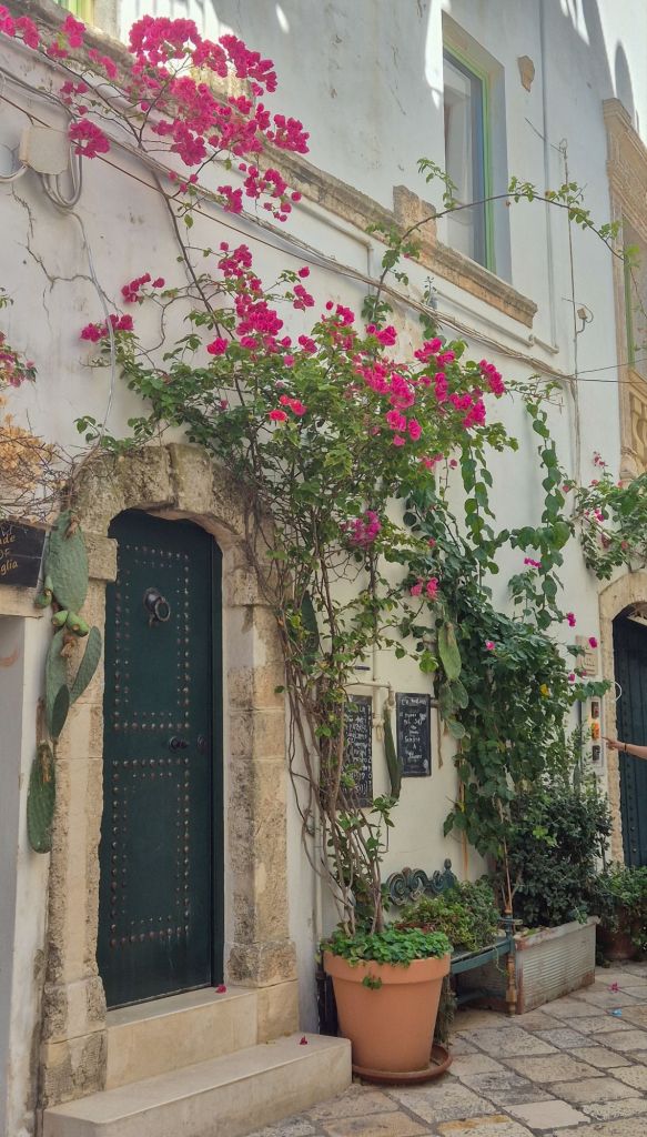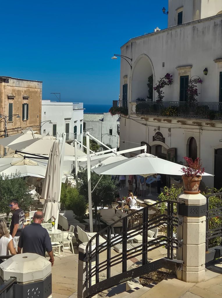 Една от забележителностите е т.нар. синя врата, от която има прекрасна гледка. Има изобилие от магазинчета за сувенири, кафенета и ресторанти. Тук за пръв път опитахме panzerotti – тестени изделия с пълнеж, обикновено от рикота и домати. Когато приключихме с обиколката, си хванахме автобус до гарата.