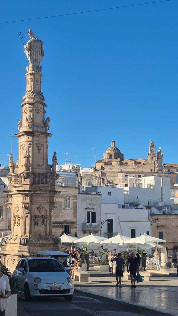 На следващия ден беше пътуването ни до Остуни. По план трябваше да отидем първо до Чистернино, където също има трули (като тези в Алберобело), но тук те не са само туристическа атракция. Хванахме влака и на Остуни се прекачихме, за да стигнем до гара Чистернино. Както писах по-горе, оказа се, че това е гара за бързи влакове без лесен достъп до града или до таксита. В крайна сметка моята половина от групата отиде директно в Остуни и останалите се присъединиха към нас по-късно. Съдейки по това, което чухме, Чистернино е много хубаво място, но аз няма да пиша за него, понеже не съм го видяла лично.