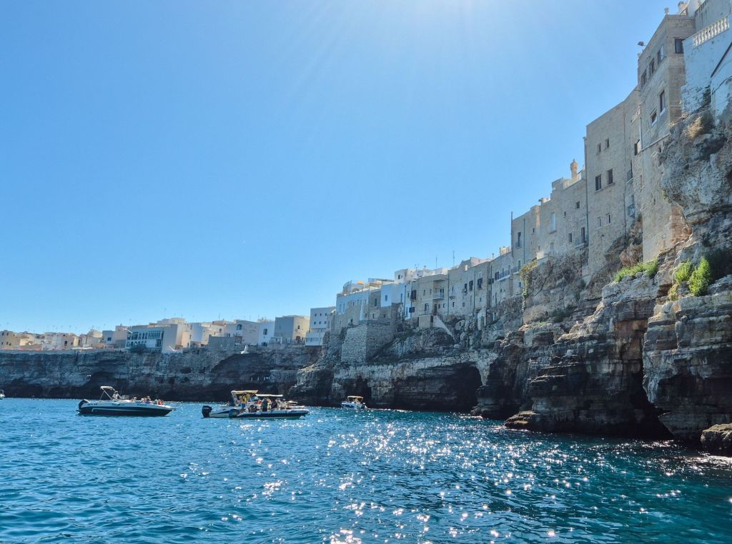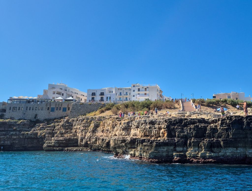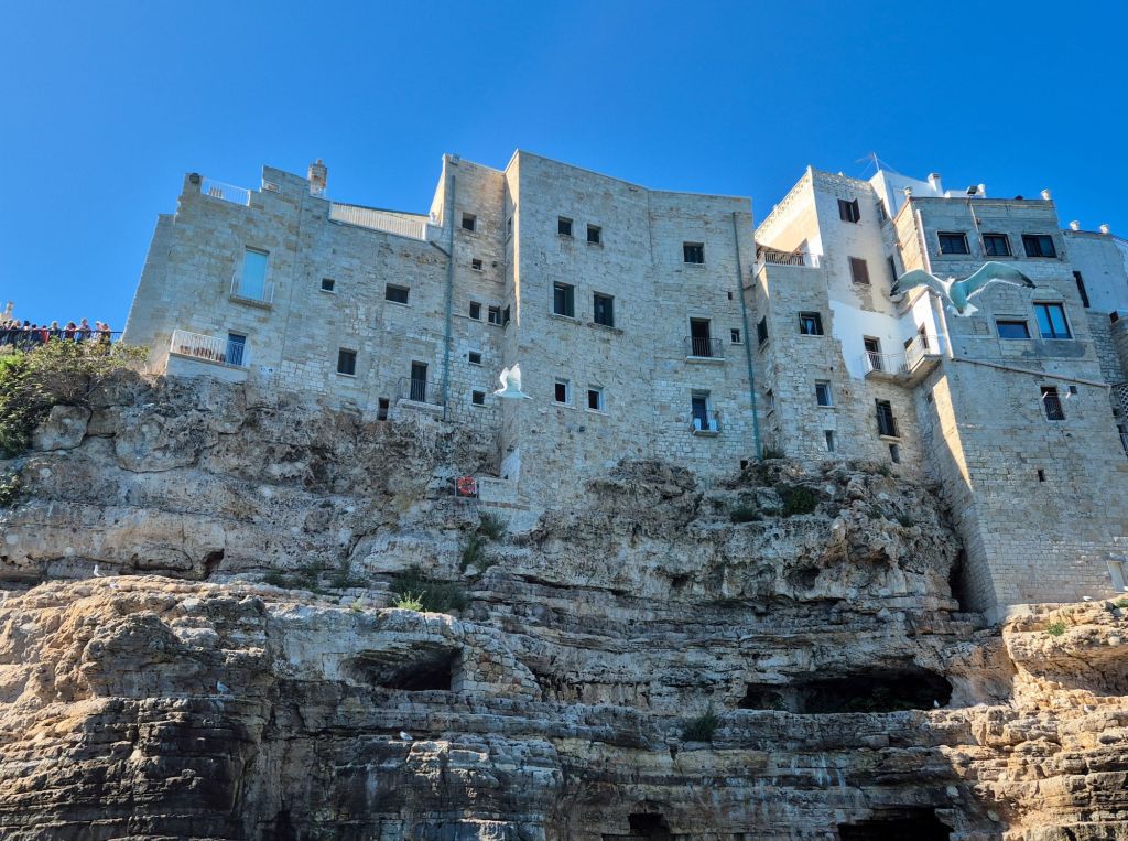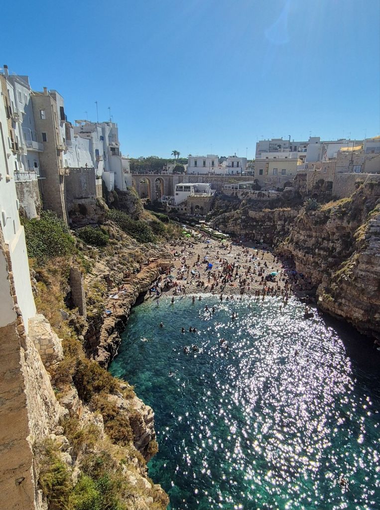 Градчето Полиняно а Маре е много приятно. Намира се на скалите над морето и има много тераси, буквално над водата. Както навсякъде, и тук има много магазинчета, ресторанти и кафенета. Дори да пропуснете лодката, има достатъчно красота, на която да се насладите. Тук е и статуята на автора на песента Volare Доменико Модуньо. Полиняно а Маре беше може би най-пренаселеното с туристи място, което посетихме.