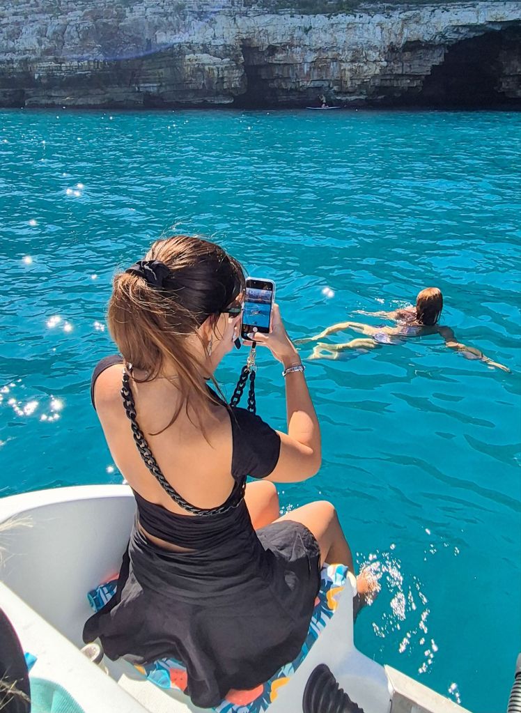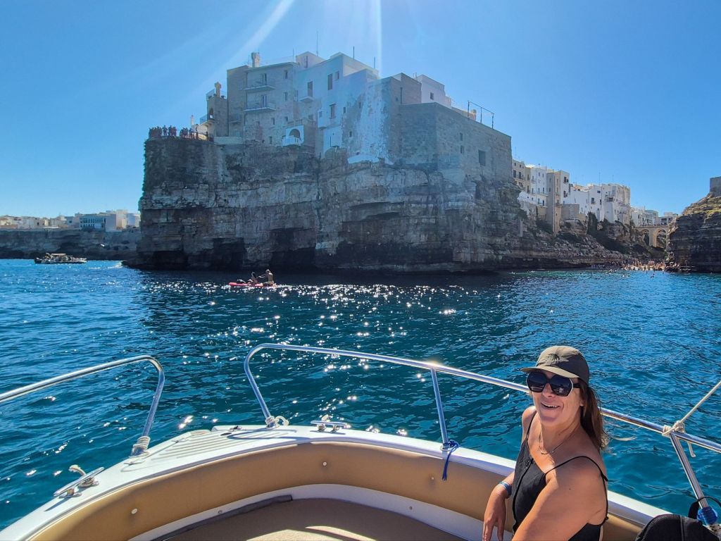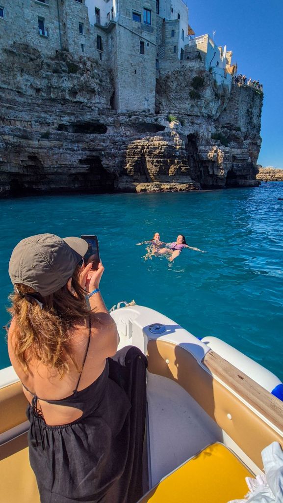 В последния си пълен ден отидохме до Полиняно а Маре и си направихме разходка с лодка. Горещо препоръчвам. Отне около час, час и половина. Ние бяхме 8 и не се наложи да споделяме лодката с други хора. Маршрутът мина покрай брега, влязохме в някои от пещерите (с лодката) и накрая имаше време за плуване. Като цяло е по-малко впечатляващо от Паксос и Антипаксос например, но не бих го пропуснала, особено в хубава компания. Екипажът на лодката (двама души), бяха много забавни. Пяхме италиански песни и завършихме разходката с чаша просеко.