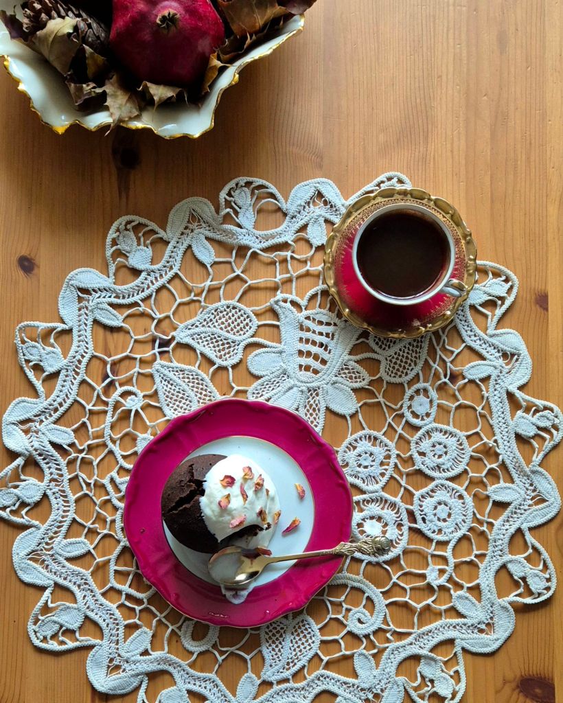 Тази рецепта също е базирана на „The Roasting Tin“ – да има и десерти. Много шоколадов, с наситен аромат и плътен вкус, този пудинг е за всички, които обичат тъмен шоколад. В оригинала има и кафе, но аз го замених с разредена розова вода, защото кардамон и рози е една от най-прекрасните комбинации в кулинарията.
