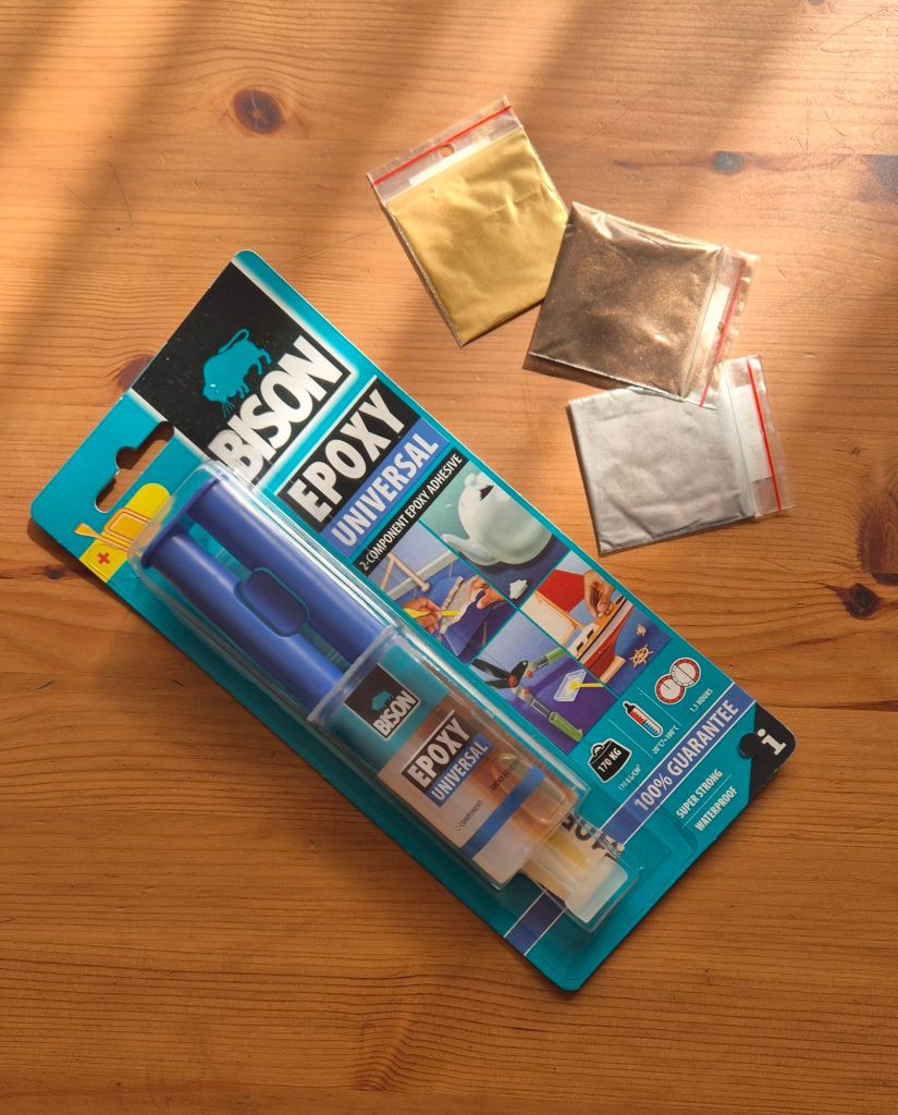 Малко повече за процеса, ако решите да пробвате. Има много видеа с обяснения, но най-важното е да си купите смола (двуфазната стяга бавно и не е необходимо да бързате много, но пък се чака доста да изсъхне) и прах мика (има в различни цветове) от магазините за хоби материали.