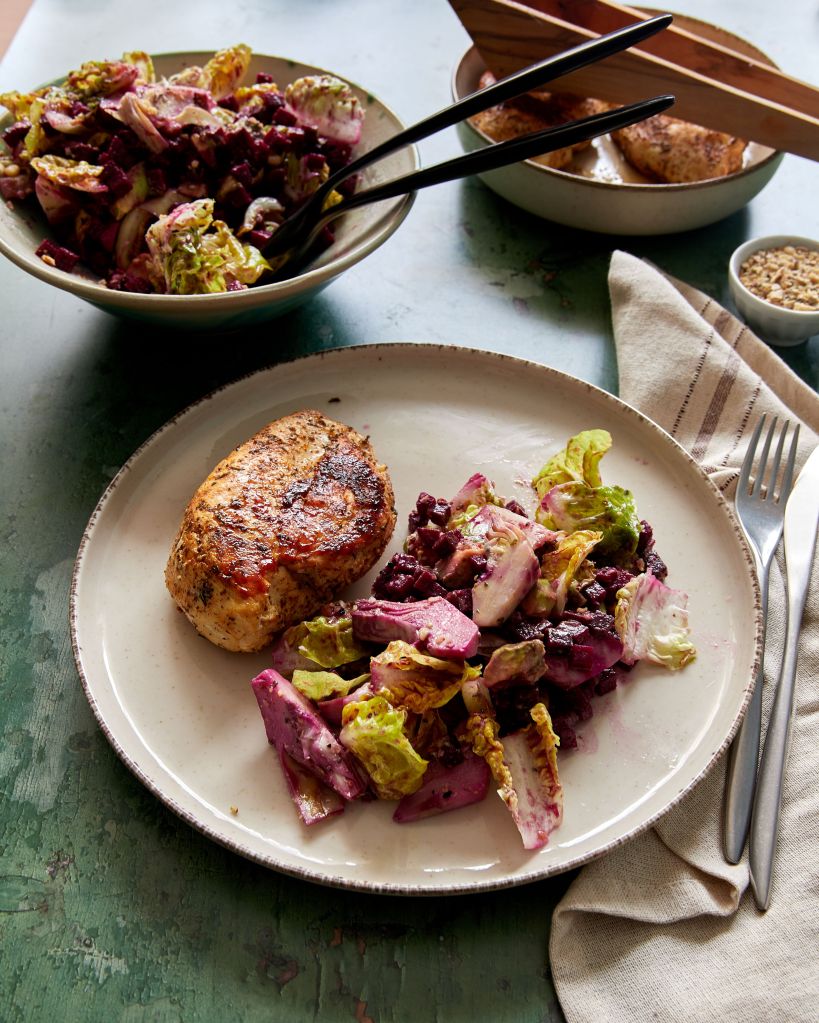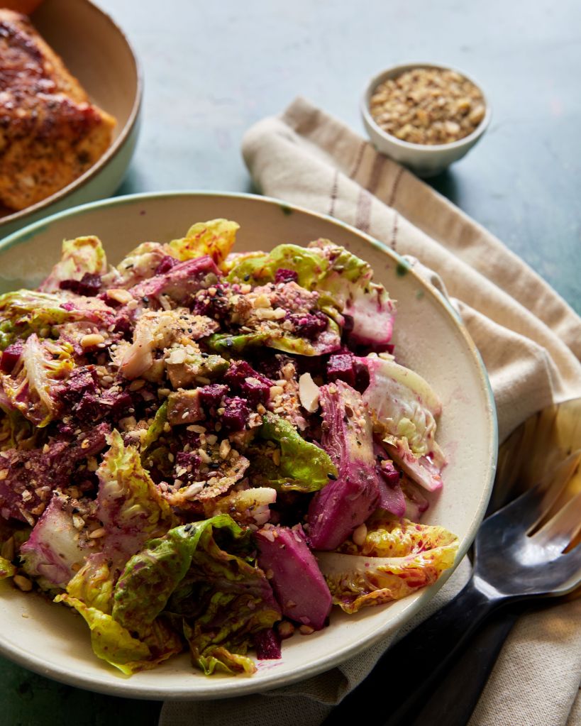 Едно от любимите ни места за брънч в София е Фабрика Дъга. Жорже обожава мекици и аз понякога се присединявам към него, но често си поръчвам авокадо тост. Там го сервират със салата с червено цвекло и артишок, която много ми харесва и която ми даде идеята за тази рецепта.