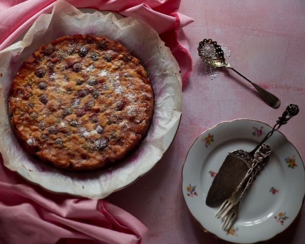 Миналата година горе-долу по това време направих една прекрасна плодова пита с праскови и боровинки. Тази рецепта е подобна, но тестото е малко погъсто, защото исках да съм сигурна, че плодовете няма да потънат и готовият десерт ще бъде красив.