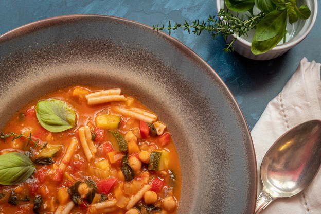 Това е моя интерпретация на класиката. Не е на фурна и е без бамя (така и не я харесах достатъчно) и без чушки, понеже още не са в сезон. Формата (на кубчета) е назаем от една рецепта за рататуй от Food Networks, която видях преди години. Харесва ми, защото така във всяка хапка имаме по малко от всеки зеленчук.
