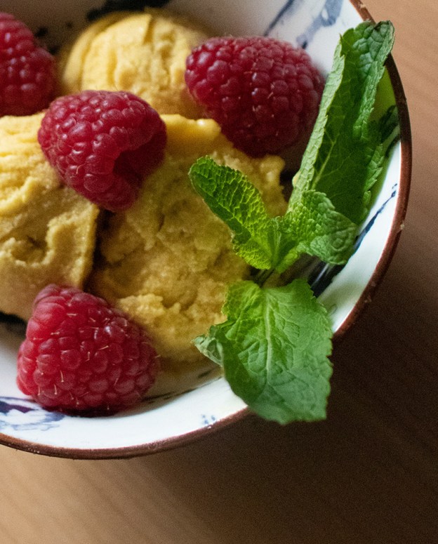 От продуктите за последната рецепта ми остана почти пълна кофичка цедено кисело мляко и реших да го направя на сладолед. Добавих му малко течна сметана и половин кофичка заквасена и го овкусих с априкот боши (скромно, понеже вкусът е много силен) и парченца кайсии.