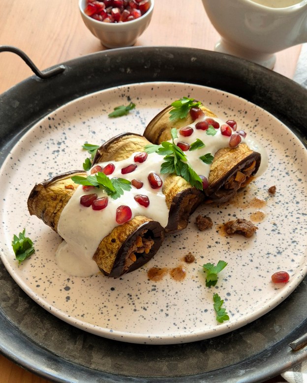 Пълнените патладжани са класика. Ако ги харесвате, но ви се иска нещо по-така, като алтернатива днес ви предлагам тези рулца с пълнеж от мляно говеждо месо. Имат нужда от малко повече усилие, но пък са много красиви и са идеален начин да впечатлите гости.