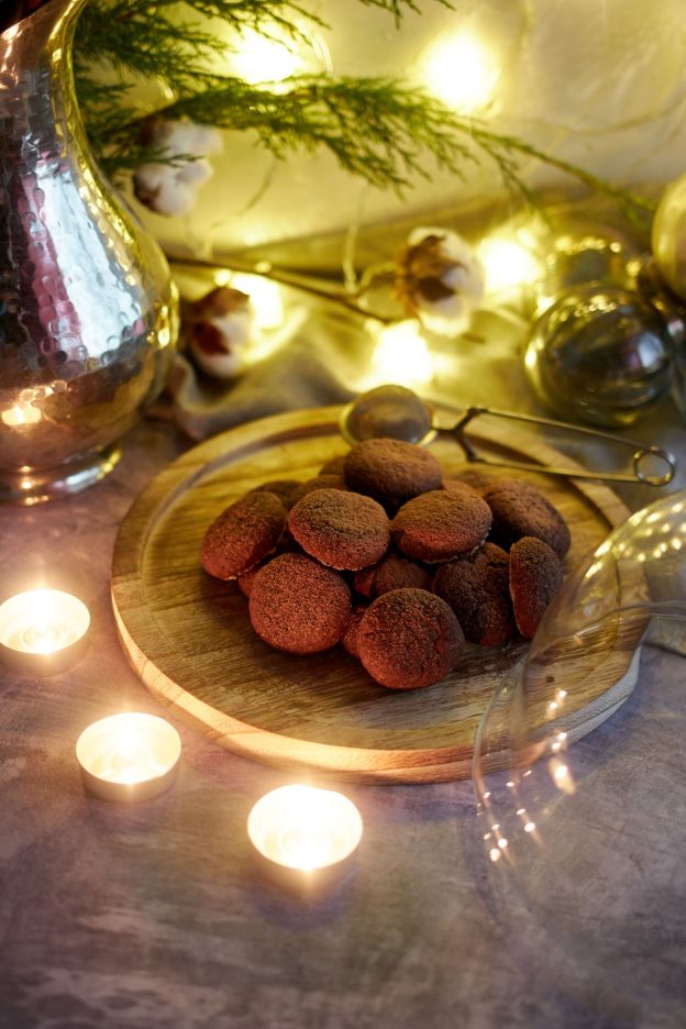 Коледно-новогодишните празници са време за уютни семейни събирания, дълги разговори и вкусна домашна храна. Какъв по-добър завършек за празничния обяд или вечеря от нещо много шоколадово. Като този кекс със сурово какао и парченца тъмен шоколад, завършен с настърган бял шоколад.
